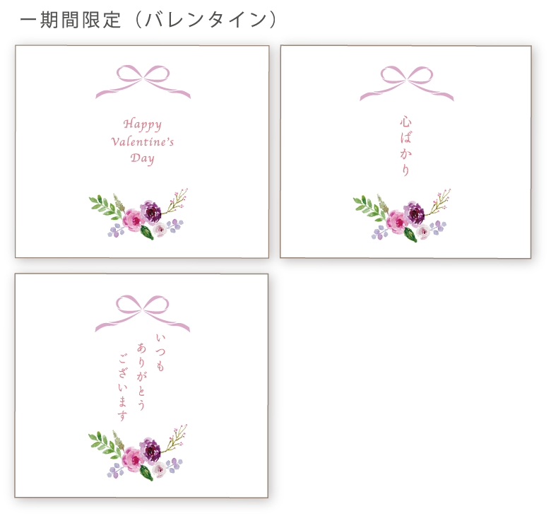 ※ご注文の商品と同じ数量をお付けいたします 商品数と異なる場合は、備考欄へご入力ください。 ※本カードは商品と一緒にお送りいたしますが、 商品への直接の貼付けや、商品の箱内に入れる等の対応はいたしかねます。 ※カードのみの発送は承っておりません。商品と一緒にご注文ください。 ※こちらでメッセージを添えることはできかねます。ご了承くださいませ。